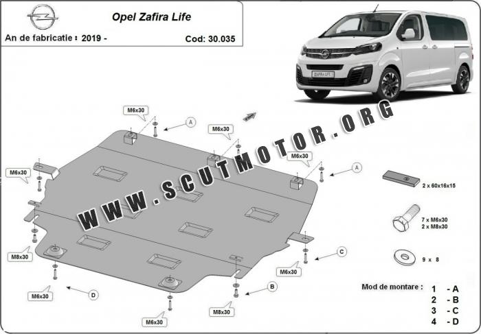 Scutul este nouă și se potrivește perfect pentru toate tipurile de motorizare Opel Zafira Life fabricat între ani 2019 - 2025.
