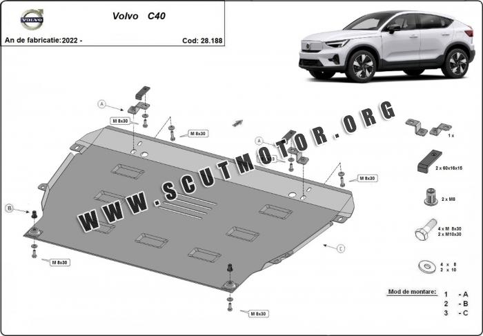 Scutul este nouă și se potrivește perfect pentru toate tipurile de motorizare Volvo C40 fabricat între ani 2022 - 2025.