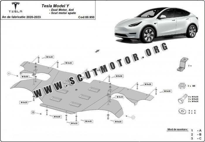 Scutul este nouă și se potrivește perfect pentru tipurile de motorizare Dual Motor - Tesla Model Y AWD fabricat între ani 2020 - 2023