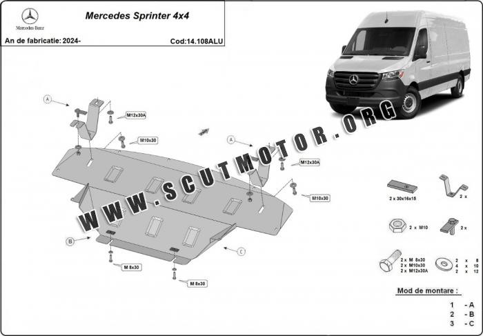 Scutul este nouă și se potrivește perfect pentru toate tipurile de motorizare Mercedes Sprinter 4x4 fabricat între ani 2024 - 2025.