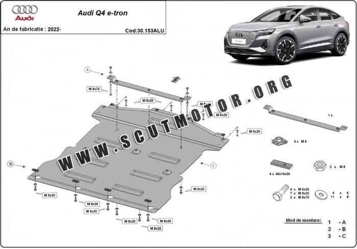 Scutul este nouă și se potrivește perfect pentru toate tipurile de motorizare Audi Q 4 e-tron fabricat între ani 2022 - 2025.