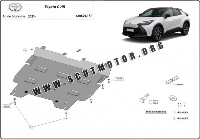 Scutul este nouă și se potrivește perfect pentru toate tipurile de motorizare Toyota C-HR fabricat între ani 2023 - 2025.