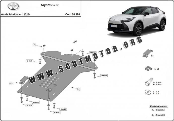 Scutul este nouă și se potrivește perfect pentru toate tipurile de motorizare Toyota C-HR fabricat între ani 2023 - 2025.