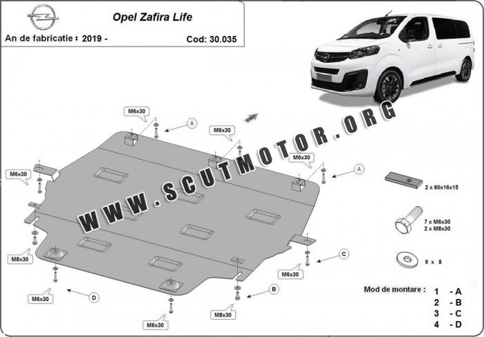 Scutul este nouă și se potrivește perfect pentru toate tipurile de motorizare Opel Zafira Life fabricat între ani 2019 - 2025.