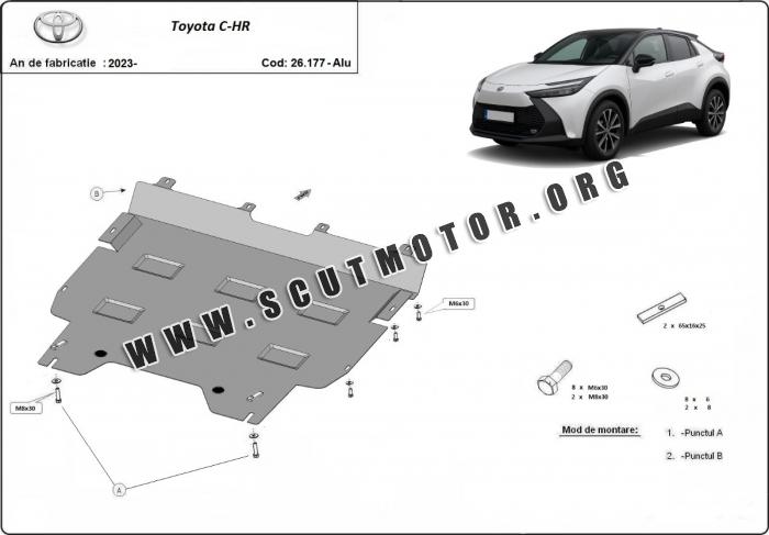 Scutul este nouă și se potrivește perfect pentru toate tipurile de motorizare Toyota C-HR fabricat între ani 2023 - 2025.