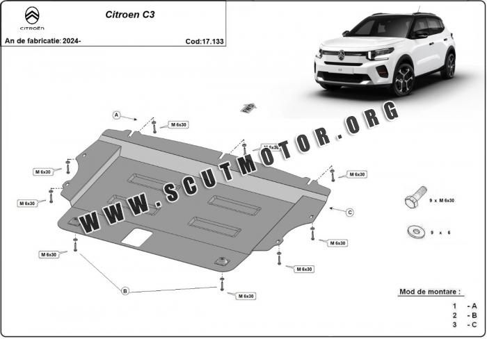 Scutul este nouă și se potrivește perfect pentru toate tipurile de motorizare Citroen C3 fabricat între ani 2024 - 2025.