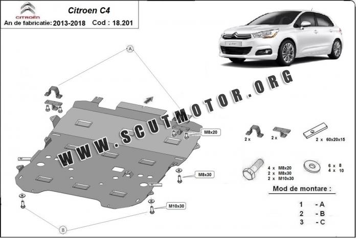 Scutul este nouă și se potrivește perfect pentru toate tipurile de motorizare Citroen C4 fabricat între ani 2013 - 2018.