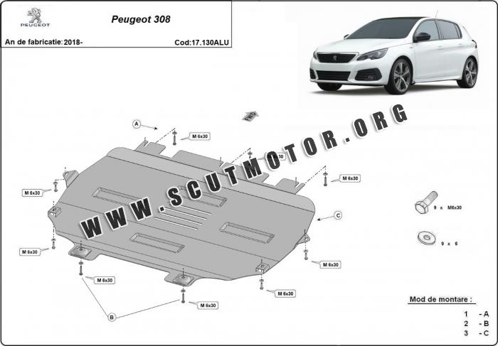 Scutul este nouă și se potrivește perfect pentru toate tipurile de motorizare Peugeot 308 fabricat între ani 2018 - 2025.