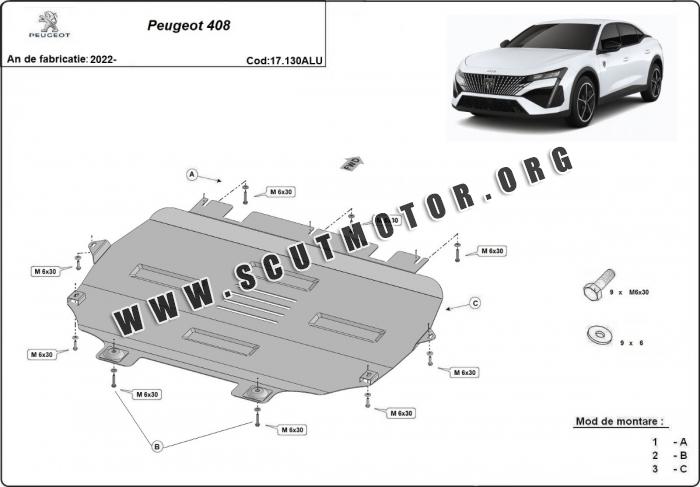 Scutul este nouă și se potrivește perfect pentru toate tipurile de motorizare Peugeot 408 fabricat între ani 2022 - 2025.