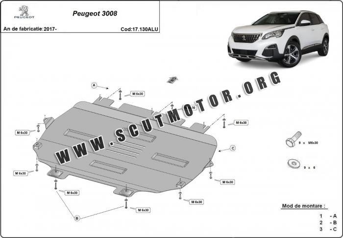 Scutul este nouă și se potrivește perfect pentru toate tipurile de motorizare Peugeot 3008 fabricat între ani 2017 - 2025.