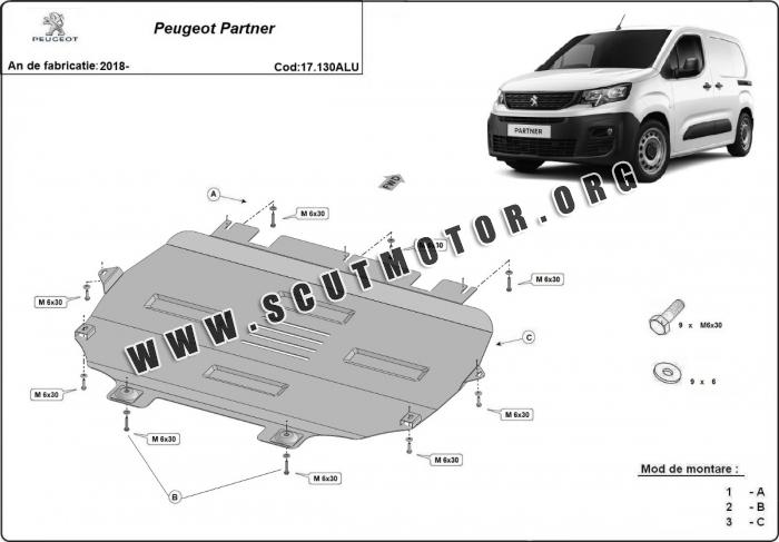 Scutul este nouă și se potrivește perfect pentru toate tipurile de motorizare Peugeot Partner fabricat între ani 2018 - 2025.