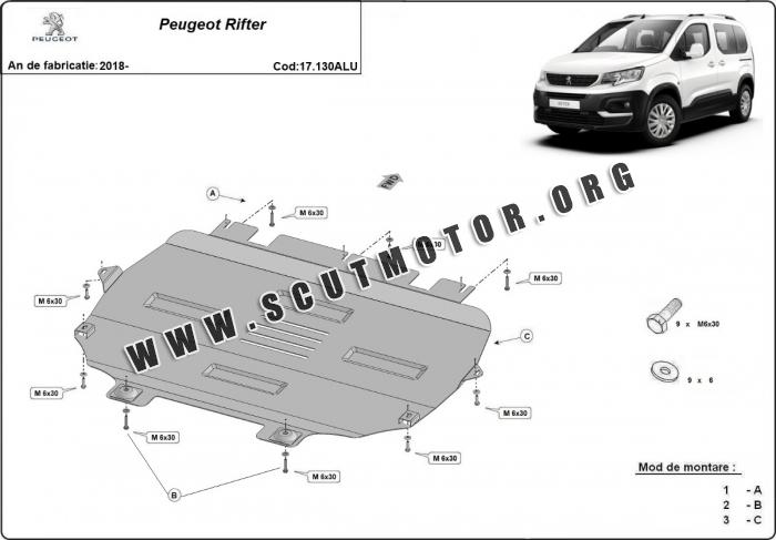 Scutul este nouă și se potrivește perfect pentru toate tipurile de motorizare Peugeot Rifter fabricat între ani 2018 - 2025.