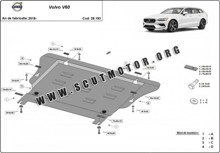 Scutul este nouă și se potrivește perfect pentru toate tipurile de motorizare Volvo V60 fabricat între ani 2018 - 2025.