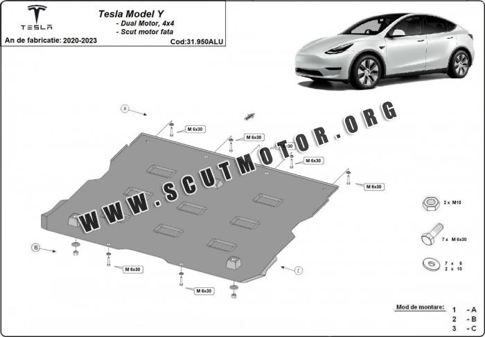 Scutul este nouă și se potrivește perfect pentru toate tipurile de motorizare Tesla Model Y AWD fabricat între ani 2020 - 2023.