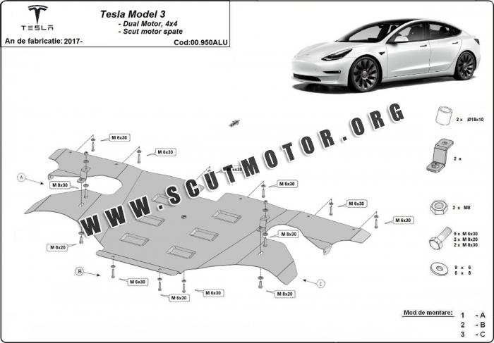 Scutul este nouă și se potrivește perfect pentru toate tipurile de motorizare Tesla Model 3 AWD fabricat între ani 2017 - 2026.