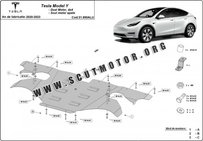 Scutul este nouă și se potrivește perfect pentru toate tipurile de motorizare Tesla Model Y AWD fabricat între ani 2020 - 2023.