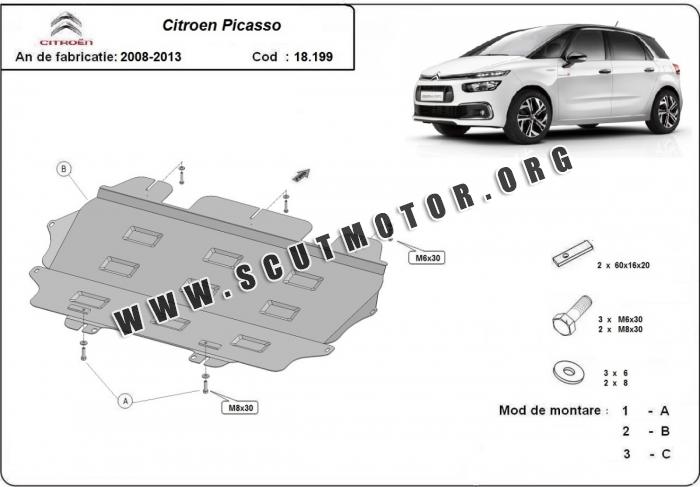 Scutul este nouă și se potrivește perfect pentru toate tipurile de motorizare Citroen C4 Picasso fabricat între ani 2008 - 2013.