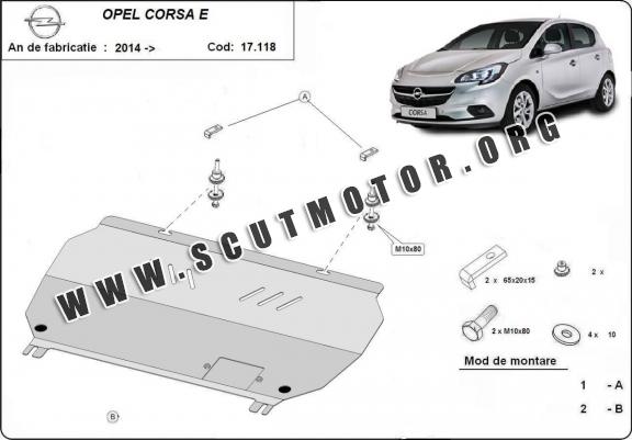 Scutul este nouă și se potrivește perfect pentru toate tipurile de motorizare Opel Corsa E fabricat între ani 2014 - 2019.