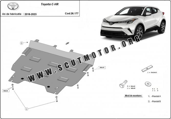 Scutul este nouă și se potrivește perfect pentru toate tipurile de motorizare Toyota C-HR fabricat între ani 2016 - 2023.